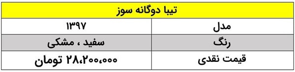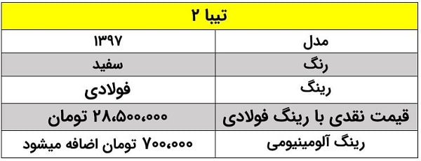 قیمت تیبا2 – قیمت تیبا صندوق دار – قیمت تیبا دوگانه سوز